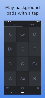 - AutoPad has two modes: LIVE mode gives you instant access to all twelve keys, while SETLIST mode allows you to create a custom list of songs.