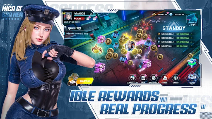 Even when you're afk, your Grand Goddess squad can always fight for you. Earn gears, resources, and rare recruits effortlessly—then return stronger than ever.