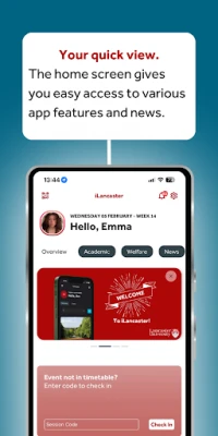 Quick View Home Screen - stay updated with the latest university news, announcements, and updates. Quickly check in to timetabled events directly from the home screen!