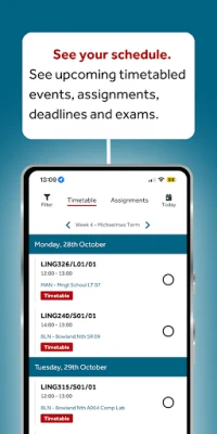 Timetable - view your events for the current week and plan ahead with future timetabled events. You can easily see deadlines and exams, and you can even add your Outlook Calendar to stay organised. Unsure of a location? Use the map to find it and self-certify absences directly through the timetable.