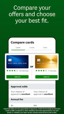 †Approval Odds are not a guarantee of approval. Credit Karma determines Approval Odds by comparing your credit profile to other Credit Karma members who were approved for the personal loan, or whether you meet certain criteria determined by the lender. Of course, there's no such thing as a sure thing, but knowing your Approval Odds may help you narrow down your choices. For example, you may not be approved because you don't meet the lender's "ability to pay standard" after they verify your income and employment; or, you already have the maximum number of accounts with that specific lender.