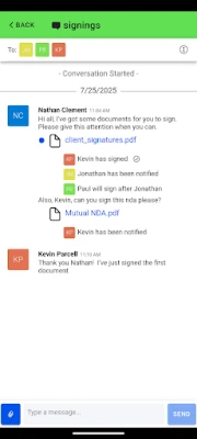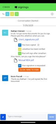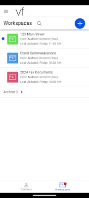 Verifyle uses Workspaces to help you organize your information. Inside a Workspace you will find Guests (the people you’d like to share something with), Message Threads, and Documents. You control exactly who sees what, with the tap of your finger.