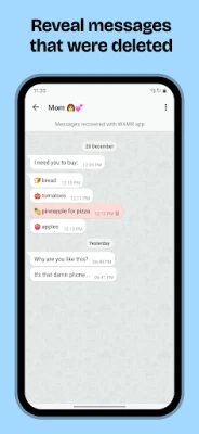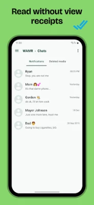 WAMR leverages your notification history to create a backup of incoming messages. When a message is deleted, WAMR instantly notifies you and retrieves the content from its backup. It's a clever workaround for those frustrating disappearing messages!